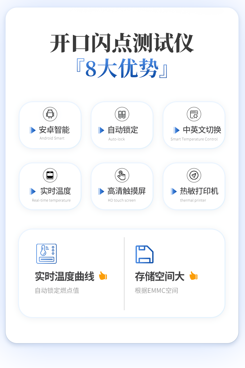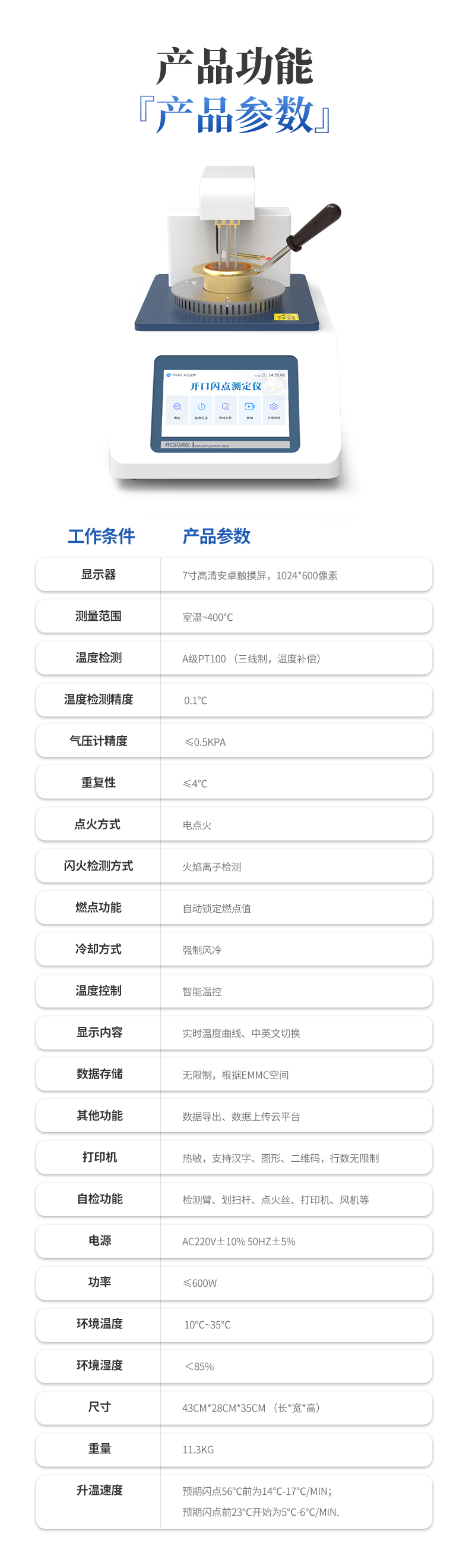 【產(chǎn)品簡介】全自動開口閃點和燃點測定儀主要用于石油產(chǎn)品和其他易燃液體在特定條件下,與空氣混合后遇火源發(fā)生閃火和燃燒的**溫度的儀器。